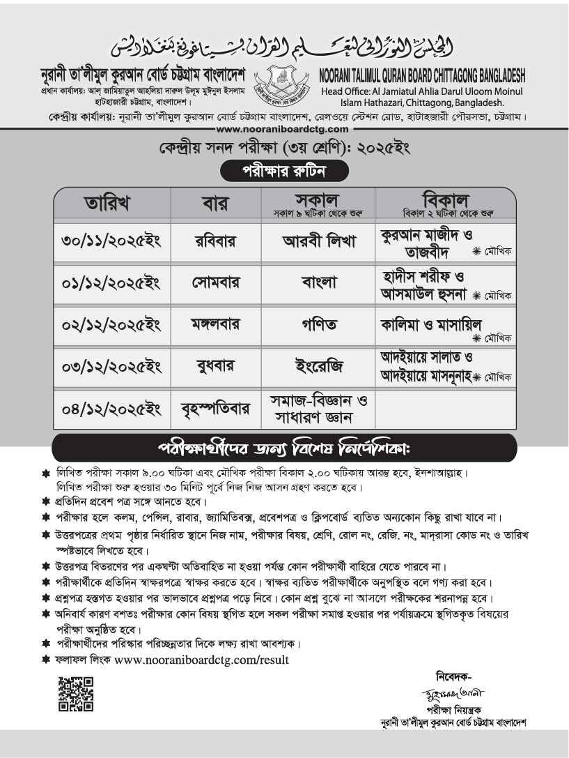 ৫ম শ্রেণির শিক্ষার্থীদের বৃত্তি পরীক্ষার ফি পরিশোধ ও প্রস্তুতি সংক্রান্ত *নোটিশ* *বিষয়: ৫ম শ্রেণির শিক্ষার্থীদের বৃত্তি পরীক্ষার প্রস্তুতি ও ফি পরিশোধ সংক্রান্ত* প্রিয় অভিভাবকবৃন্দ, অতি আনন্দের সাথে জানানো যাচ্ছে যে, আল হুদা একাডেমির ৫ম শ্রেণির কিছু মেধাবী শিক্ষার্থীকে বৃত্তি পরীক্ষার জন্য মনোনীত করা হয়েছে। পরীক্ষার বৃত্তি ফি নির্ধারণ করা হয়েছে *৮০০ টাকা* প্রতি শিক্ষার্থী। অনুগ্রহ করে আগামীকাল *সোমবার দুপুর ১২টার (12 PM)* মধ্যে নির্ধারিত ফি অফিসে জমা দেওয়ার জন্য অনুরোধ করা হচ্ছে। *বৃত্তির জন্য মনোনীত শিক্ষার্থীদের নাম:* ১। সামিয়া ২। রাইসা ৩। মোবাশ্বিরা ৪। জান্নাত ৫। মনিশা ৬। ওহী ৭। আয়েশা শিক্ষার্থীদের অনুরোধ করা হচ্ছে যেন তারা মনোযোগ দিয়ে পাঠ্যবই অধ্যয়ন করে এবং বৃত্তি পরীক্ষার যথাযথ প্রস্তুতি নেয়।অভিভাবকবৃন্দকেও অনুরোধ করা হচ্ছে সন্তানদের পড়ালেখায় তদারকি ও উৎসাহ প্রদানের মাধ্যমে সহযোগিতা করতে। আপনাদের আন্তরিক সহযোগিতা ও দোয়ার মাধ্যমে ইনশাআল্লাহ আমাদের শিক্ষার্থীরা উত্তম ফল অর্জন করবে। ধন্যবাদান্তে, মো: শফিকুল ইসলাম পরিচালক *আল হুদা একাডেমি* মাইজহাটি, পাকুন্দিয়া, কিশোরগঞ্জ |